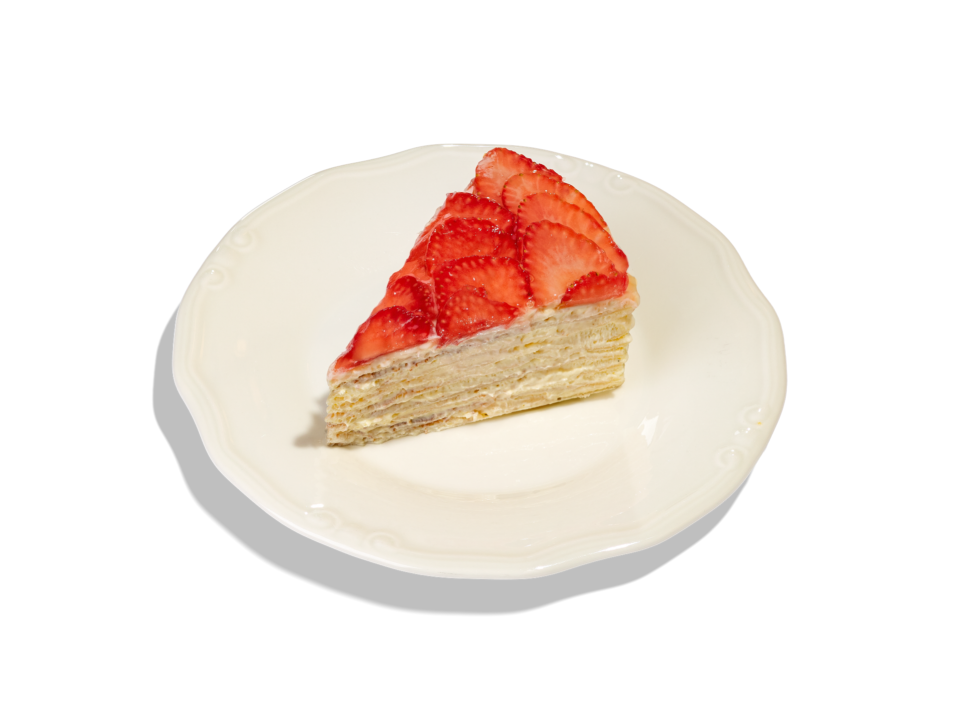 ЯПОНСКИЙ БЛИННЫЙ ТОРТ 590₽. Тонкие блины, приготовленные из рисовой муки, яиц, сахара и сливочного масла, Пропитываются кремом из сыра маскарпоне с добавлением ванильной пасты, желтков и сливок. Торт украшается свежими ягодами клубники, политыми нейтральным кондитерским гелем.